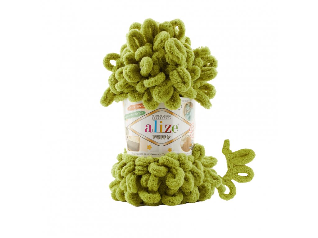 Příze Puffy od značky Alize je silná žinylková příze s připravenými velkými oky pro pletení na rukou. Při tvoření z této příze nebudete potřebovat jehlice ani háček. Příze je ze 100% mikropolyesteru. Vytvoříte z ní nádrerné hebké a nadýchané deky, přehozy, ale i třeba nákrčníky aj.