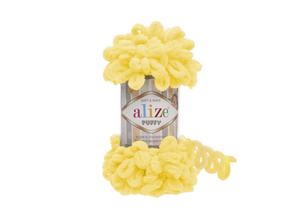 Příze Puffy od značky Alize je silná žinylková příze s připravenými velkými oky pro pletení na rukou. Při tvoření z této příze nebudete potřebovat jehlice ani háček. Příze je ze 100% mikropolyesteru. Vytvoříte z ní nádrerné hebké a nadýchané deky, přehozy, ale i třeba nákrčníky aj.