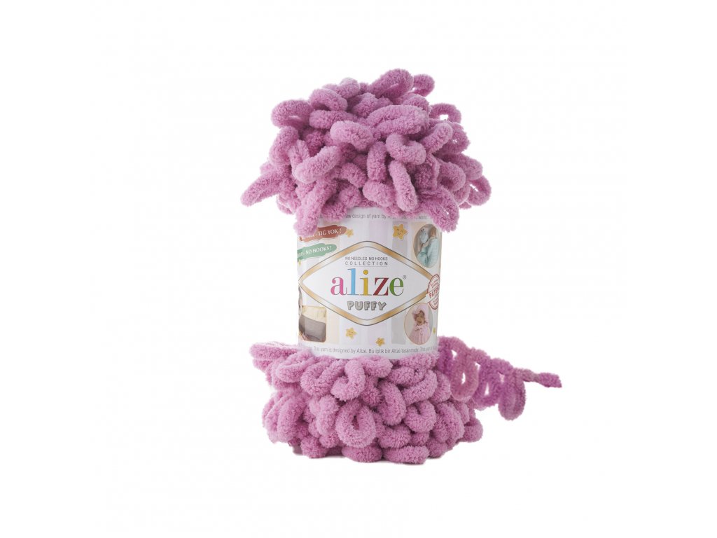 Příze Puffy od značky Alize je silná žinylková příze s připravenými velkými oky pro pletení na rukou. Při tvoření z této příze nebudete potřebovat jehlice ani háček. Příze je ze 100% mikropolyesteru. Vytvoříte z ní nádrerné hebké a nadýchané deky, přehozy, ale i třeba nákrčníky aj.