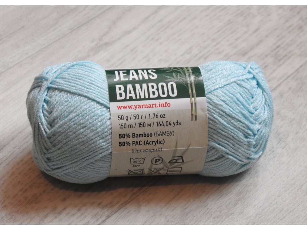 Jeans Bamboo. Nová příze ze skupiny "Jeans " je velmi vydařenou a optimální směsí bambusu a akrylu. Bambus poskytuje neuvěřitelnou měkkost, zklidňuje podráždění pokožky, má antibakteriální vlastnosti a je hypoalergenní. Úplet z ní je měkký, hladký a volný, ale při pletení se nerozpadá, během používání se neroztahuje ani nedeformuje. Po vyprání výrobky vytvořené z této moderní a praktické příze neztrácejí svůj vzhled ani barvu. Velkou výhodou je její antipilingová úprava, díky které ne netvoří tzv. "žmolky". Paleta barev příze je prezentována ve stovkách odstínů s mírně opotřebovaným "džínovým" efektem. Na výběr jsou krásné jedinečné odstíny jak jemné pastelové tak jasné šťavnaté tóny. Tento vynikající materiál pro pletení nebo háčkování je vhodný pro tvorbu letního i zimního oblečení, díky prodyšnému složení nití. Vhodné pro pletení svetrů, halenek, dětského oblečení a také hraček.
